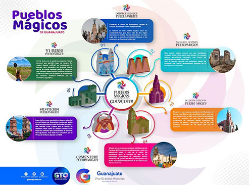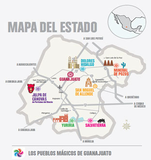 Guanajuato es conocido como el destino turístico colonial más importante del país y tiene varias «joyas coloniales»9 y belleza arquitectónica además de zonas arqueológicas y centros de comercio y negocios